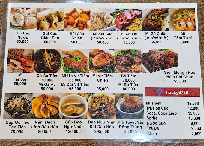 Menu ở quán đa dạng nhiều món với giá chỉ từ 20.000 VNĐ – 150.000 VNĐ thích hợp cho nhiều đối tượng như các bạn học sinh, sinh viên hoặc gia đình đến trải nghiệm. Một số món thường được mọi người gọi như mì xá xíu, mì sủi cảo, sủi cảo chiên, bánh bao kim sa,… Đặc biệt khi đến quán thì nhất định không thể bỏ qua món Bào ngư Nhật sốt dầu hào đầy công phu.